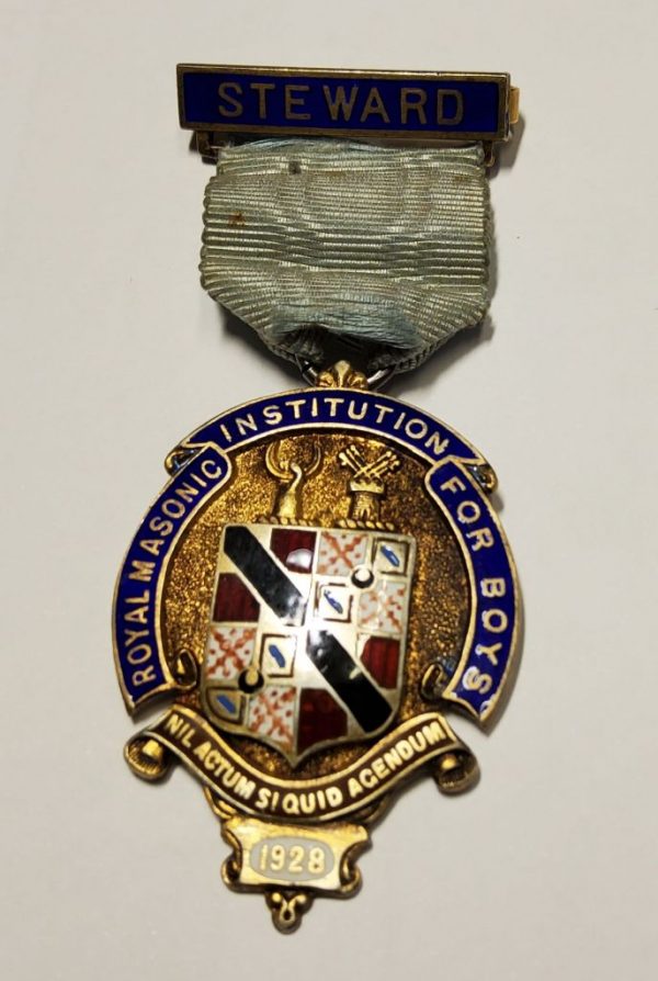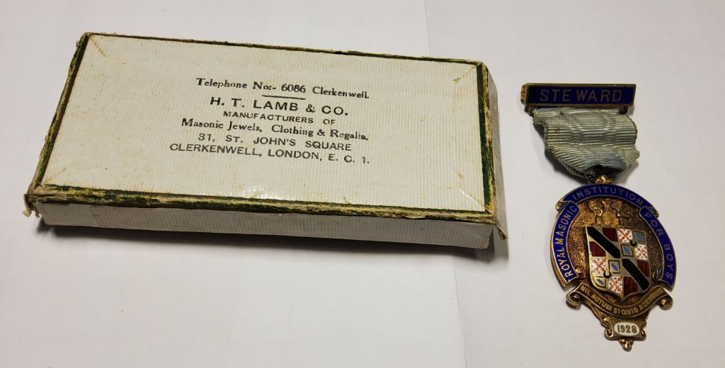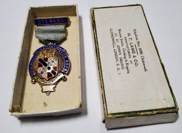 MEDALLA MASÓNICA INGLESA PLATA MACIZA. FUNDACIÓN STEWARD PARA CHICOS DE 1928 en su CAJITA ORIGINAL.
